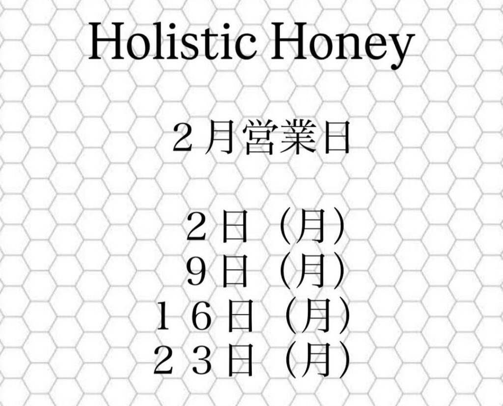 【和歌山】Holistic Honey 2月営業日