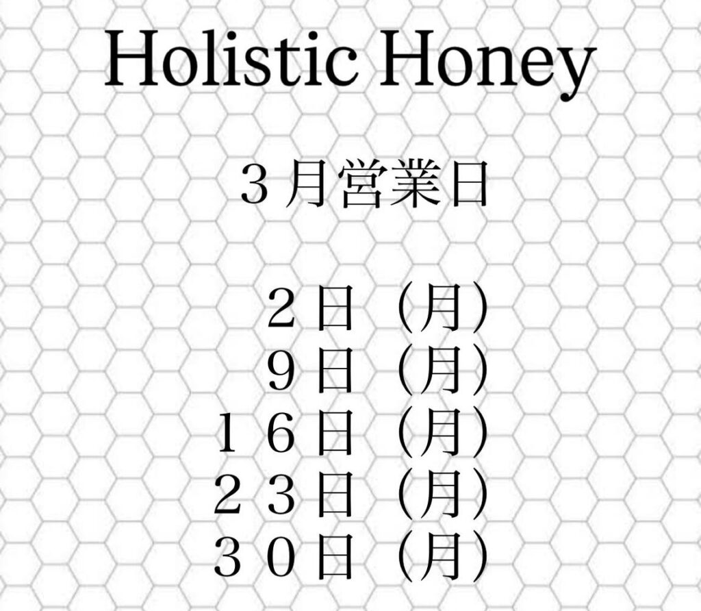 【和歌山】Holistic Honey3月営業日